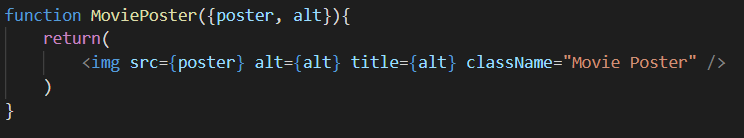 movie라는 함수를 위와 같이 수정해 주었다. 단순히 props를 통해 데이터를 받아와서 사용하는 함수이므로 class를 사용하지 않고 function을 사용해 주었다. function에서는 class처럼 state를 가지거나 하는 기능은 할 수 없다. 그렇지만 더 간단하게 코딩이 가능하다.
