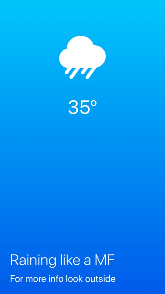 우리가 만들 날씨 화면은 다음과 같다. 구성을 살펴보자. 아이콘 + 온도 + main title + subtitle로 이루어져 있다.